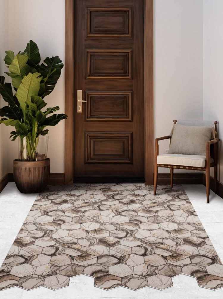 Коврик вырезной icarpet PRINT антискользящий (105) "Соты Мрамор" 120х200 бежевый S