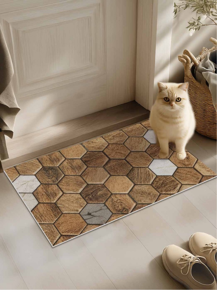 Коврик вырезной icarpet PRINT антискользящий (110) "Соты Дерево с мрамором" 50х80