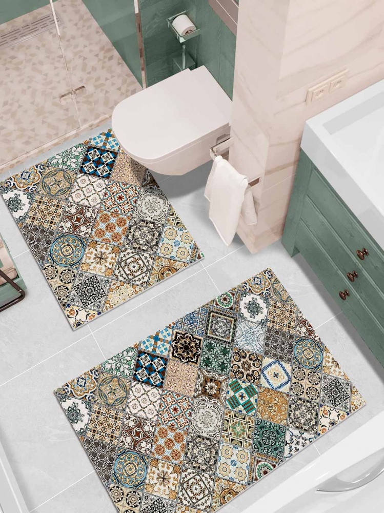 Набор ковриков вырезных icarpet PRINT антискользящих (132) "Плитка Тоскана" 60х100+60х50 мультиколор